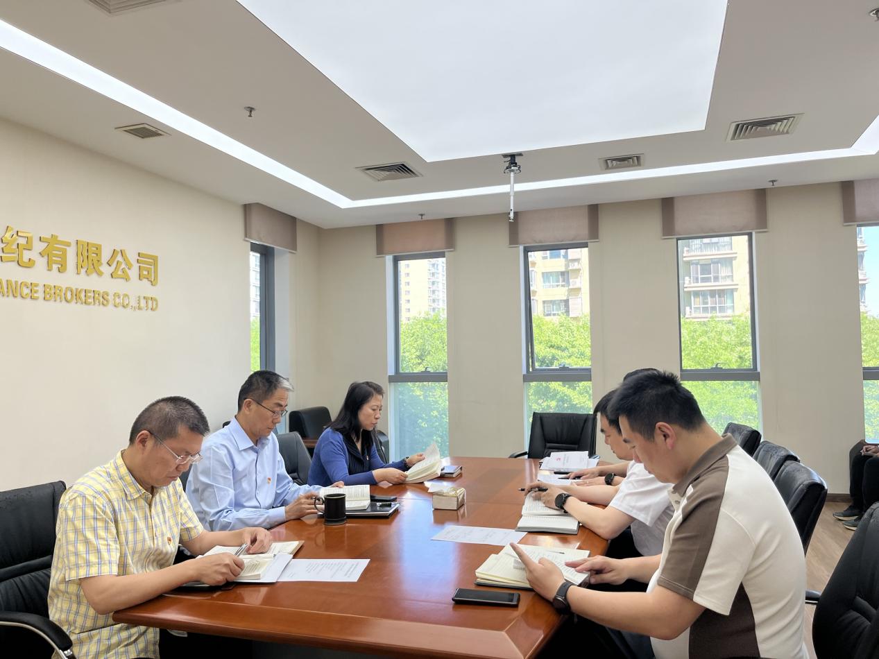 5月15日,中國(guó)有色集團(tuán)出資企業(yè)金晟保險(xiǎn)經(jīng)紀(jì)有限公司(簡(jiǎn)稱(chēng):中色金晟)黨支部舉辦理論學(xué)習(xí)中心組黨紀(jì)學(xué)習(xí)教育第二期專(zhuān)題讀書(shū)班,原原本本、逐條學(xué)習(xí)《中國(guó)共產(chǎn)黨紀(jì)律處分條例》。黨支部書(shū)記、副總經(jīng)理左躍新主持讀書(shū)班并作研討發(fā)言,執(zhí)行董事、總經(jīng)理吳剛作研討發(fā)言,其他班子成員領(lǐng)學(xué)《條例》部分章節(jié)內(nèi)容。