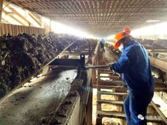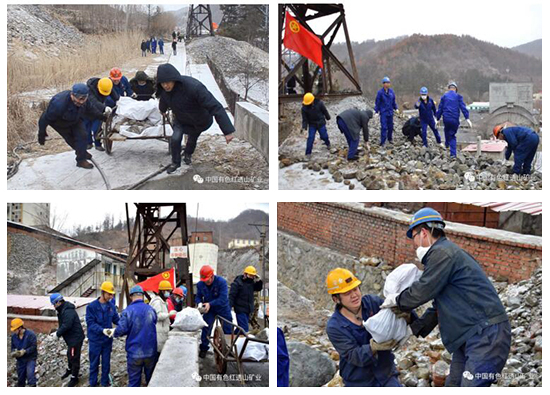 中色紅透山團(tuán)員青年回收礦斗運(yùn)輸過程中灑落的礦石
