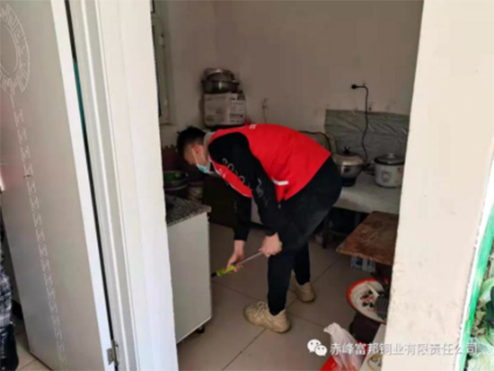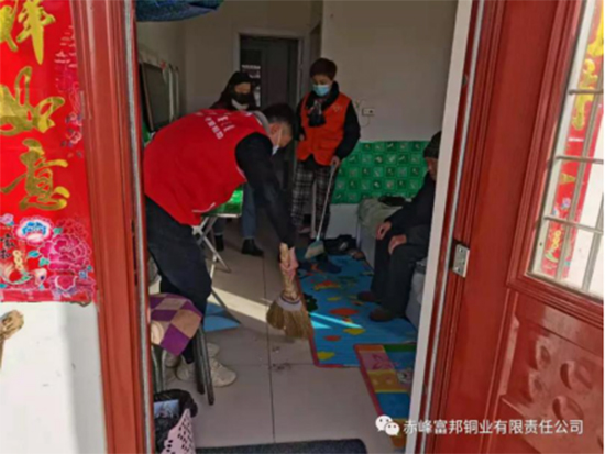 中色沈礦富邦銅業(yè)青年志愿者對孤寡老人的住所進(jìn)行清掃