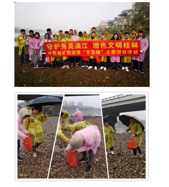 為進(jìn)一步傳承雷鋒精神,3月5日,中色桂礦院團(tuán)委組織團(tuán)員青年開展了以“守護(hù)秀美漓江、增色文明桂林”為主題的學(xué)雷鋒主題團(tuán)日活動(dòng)。來自中色桂礦院7個(gè)團(tuán)支部的22名團(tuán)員青年積極響應(yīng),迅速行動(dòng),到漓江邊虞山橋至伏波山江段沿線,撿拾江邊的煙頭、塑料等垃圾。雖然桂林下著蒙蒙細(xì)雨,但他們熱情不減、干勁十足。