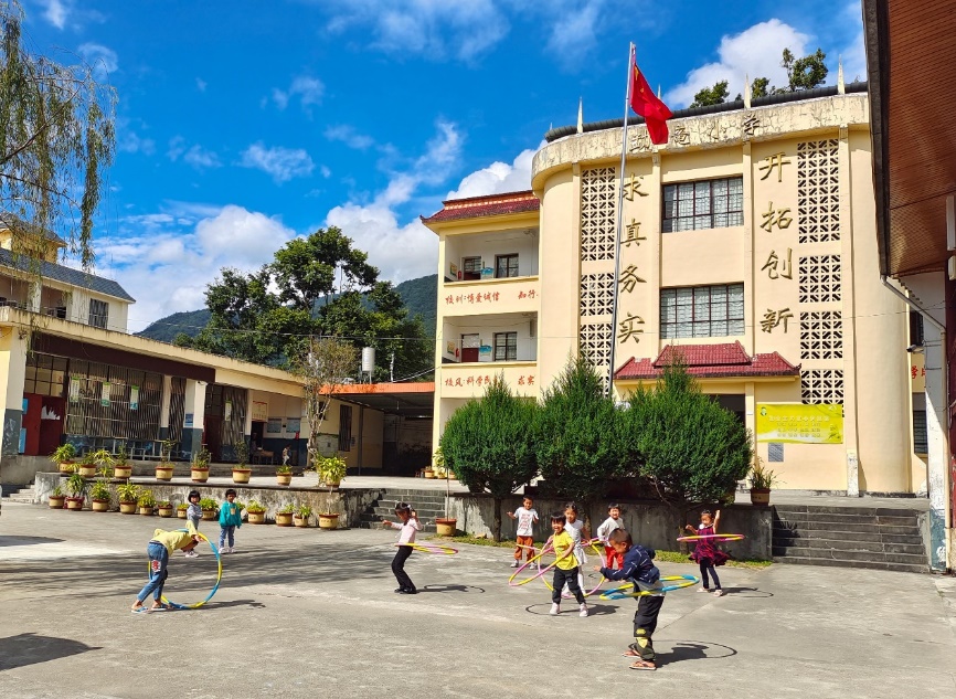 從梁河縣城到小廠鄉勐竜村,一路云霧繚繞、百轉千回,這座“世外桃源”地處高寒深山、交通閉塞。勐竜小學校長楊明浩向我們介紹到:“因勐竜村較為偏遠、相對獨立,這所小學能夠覆蓋到的學生并不算多,但這是村里孩子能接受教育的唯一窗口。”2004年,中國有色集團為勐竜小學幫扶建設了教學樓,這也是公司在梁河幫扶建設的第一座教學樓,而援建標識牌上記錄的還是公司時用名“中國有色建設集團有限公司”。變的是稱謂,不變的是傾情幫扶,五年后的2010年中國有色集團再次捐資幫助購買教學設備,十年后的2014年繼續幫扶建成了學生宿舍和圍墻。