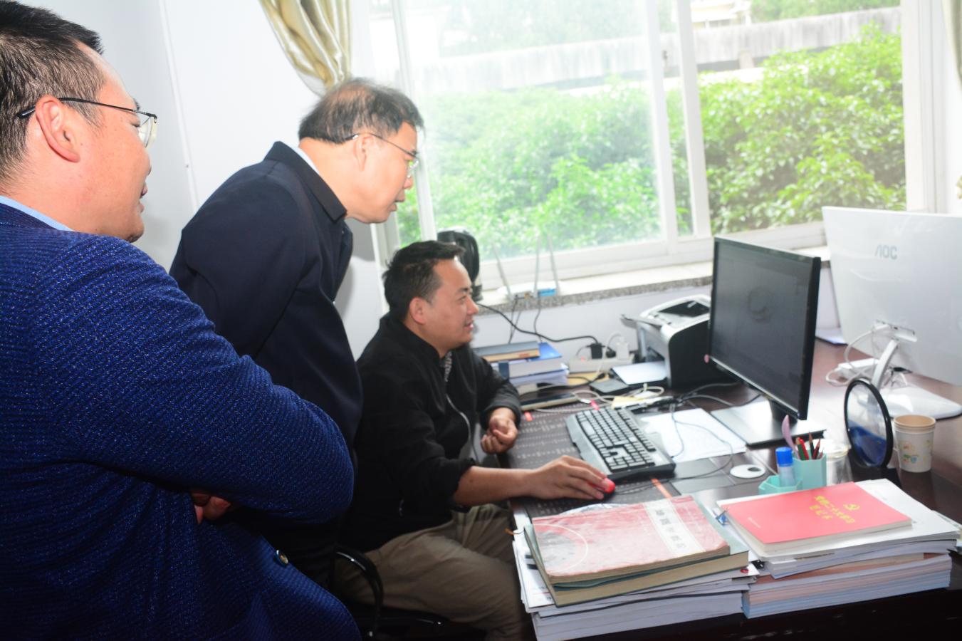 奚正平書記觀看技術人員地質勘探數字三維建模軟件現場演示