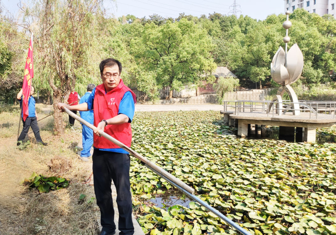 ????隨后,大家前往轄區人工湖,打撈湖面上的水草和漂浮物,以實際行動維護身邊環境。經過一個多小時的辛苦工作,湖面水草大部分被打撈出來了。