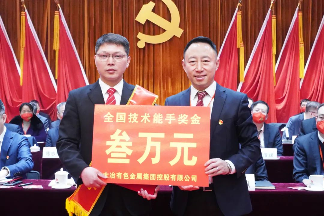 ????會上,播放了2022年度公司紅旗集體、紅旗班組以及勞動模范先進(jìn)事跡視頻短片。公司領(lǐng)導(dǎo)為2022年度公司銅都工匠、紅旗集體、紅旗班組、勞動模范和全國技術(shù)能手邵志村頒獎(jiǎng)。