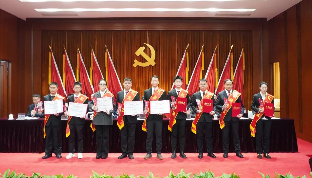 會議現場表彰了2025年度公司10個紅旗集體、8個紅旗班組、10名勞動模范、5名銅都工匠。