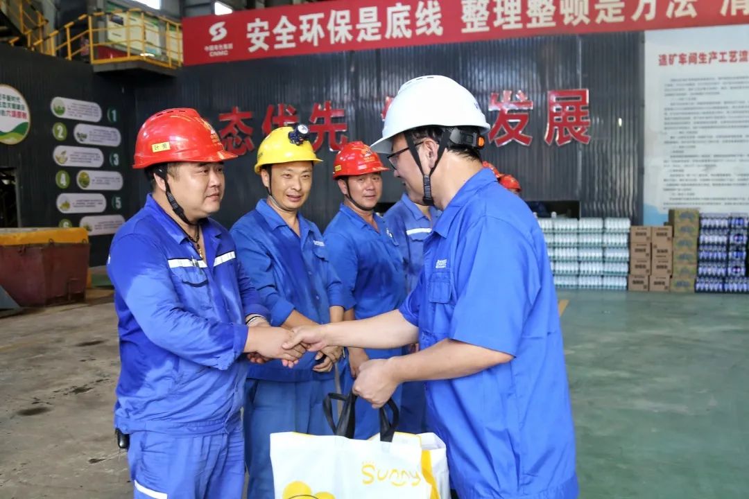 公司黨委書(shū)記、董事長(zhǎng)胡國(guó)斌一行到冶煉廠轉(zhuǎn)爐車(chē)間精煉爐圓盤(pán)澆筑區(qū)現(xiàn)場(chǎng)、電解30萬(wàn)噸現(xiàn)場(chǎng)“送清涼”。胡國(guó)斌表示,近期高溫天氣持續(xù),大家堅(jiān)守工作崗位十分辛苦,感謝大家為公司發(fā)展作出的貢獻(xiàn)。今年上半年公司生產(chǎn)經(jīng)營(yíng)平穩(wěn)運(yùn)行,這與大家的辛勤付出是密不可分的;下半年由于銅加工費(fèi)下降,面臨的任務(wù)更重、形勢(shì)更加困難,希望大家堅(jiān)定信心,共同努力,進(jìn)一步做好安全環(huán)保、產(chǎn)品質(zhì)量、成本管控等工作,完成全年生產(chǎn)經(jīng)營(yíng)任務(wù)以及增產(chǎn)上儲(chǔ)、科技賦能新材料等重點(diǎn)工作,為公司高質(zhì)量發(fā)展注入強(qiáng)勁動(dòng)能。胡國(guó)斌強(qiáng)調(diào),高溫季節(jié),要采取有效措施防暑降溫,合理安排時(shí)間、注重勞逸結(jié)合,既保證生產(chǎn)進(jìn)度,也注意安全健康。公司將按照集團(tuán)要求,進(jìn)一步推進(jìn)智能化工廠、黑燈工廠建設(shè),讓職工在空調(diào)房里操控,少在現(xiàn)場(chǎng)流汗,為大家提供更好、更清涼的工作環(huán)境。